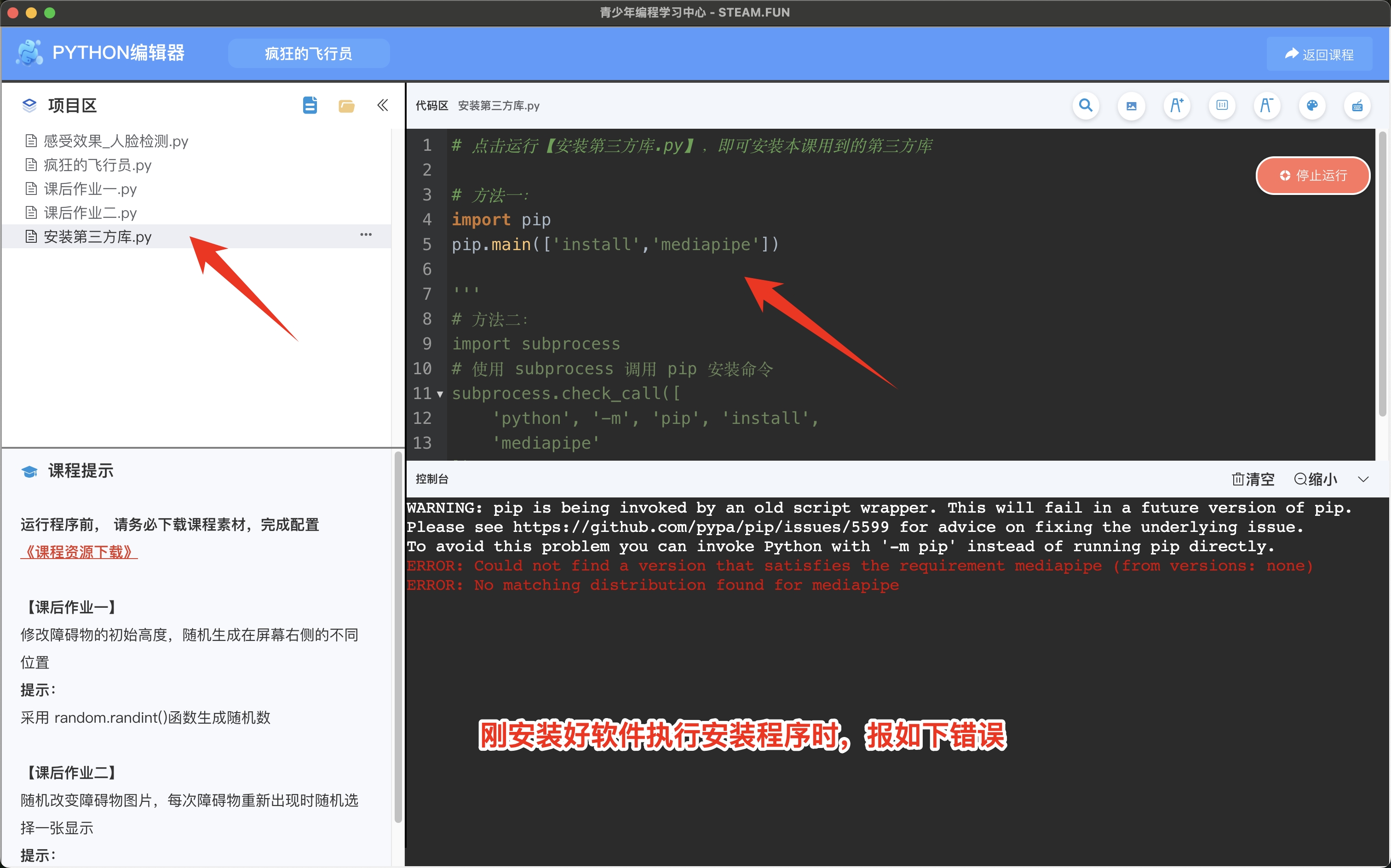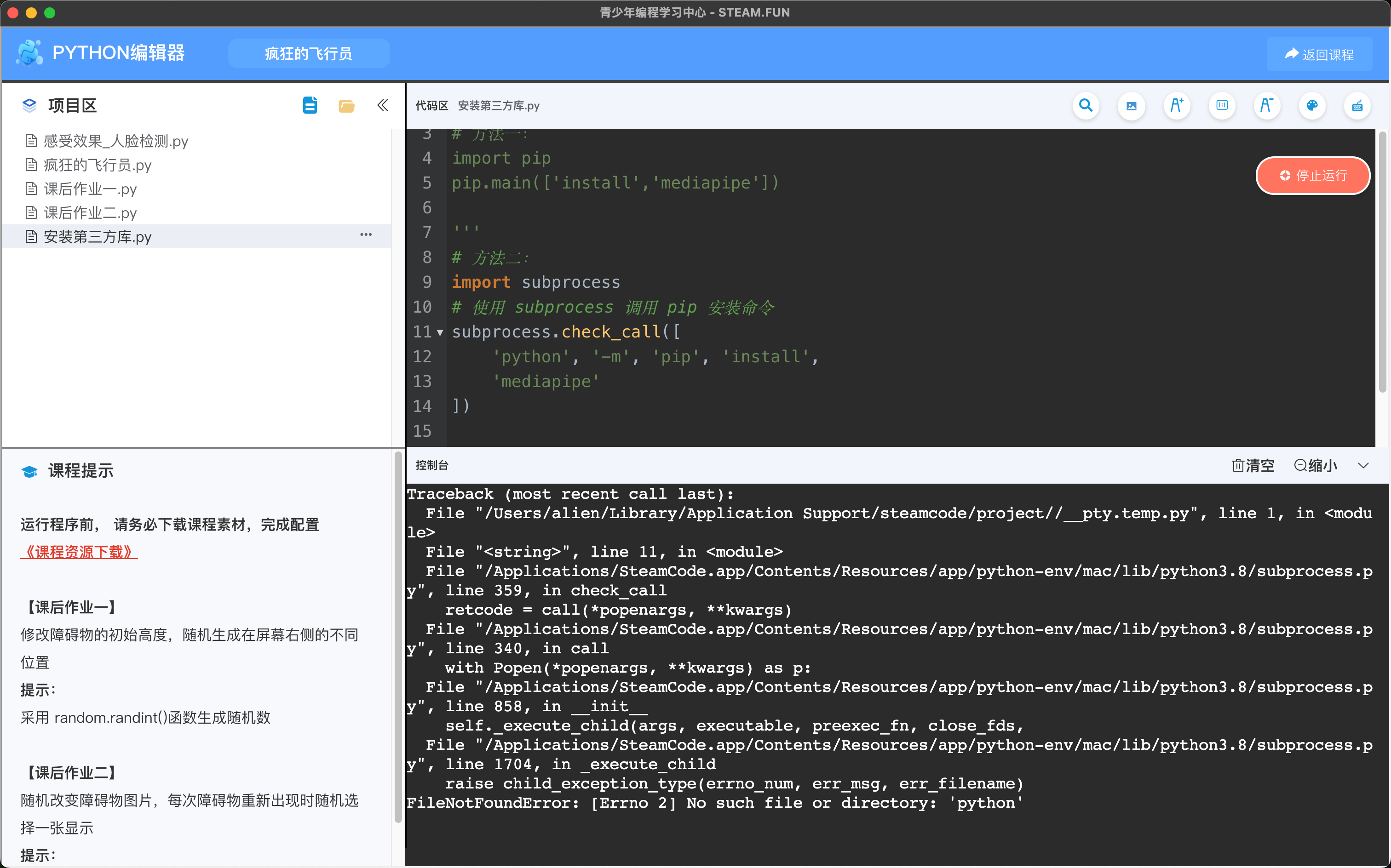 mac电脑运行以上程序时,报如下错误