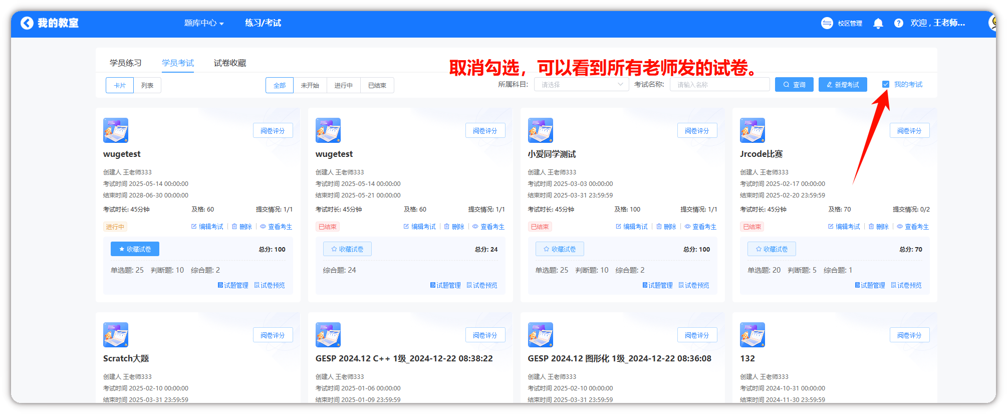 Q2-试卷让其他老师使用,应该怎么操作?