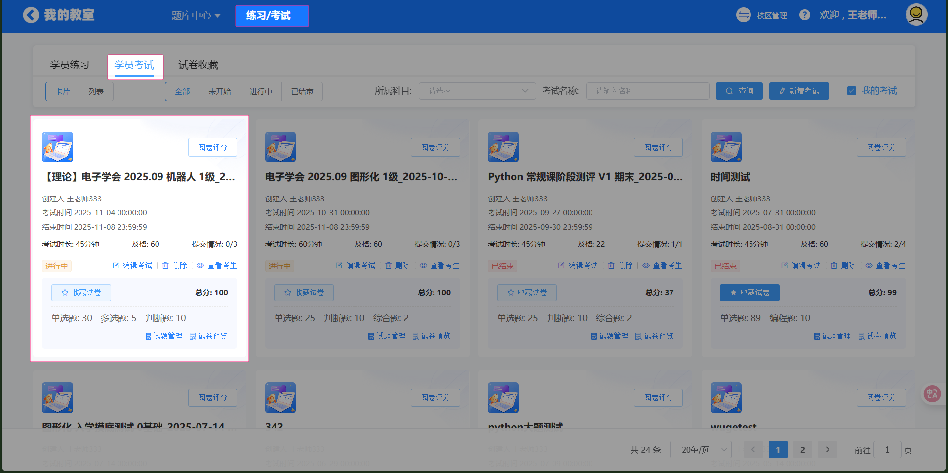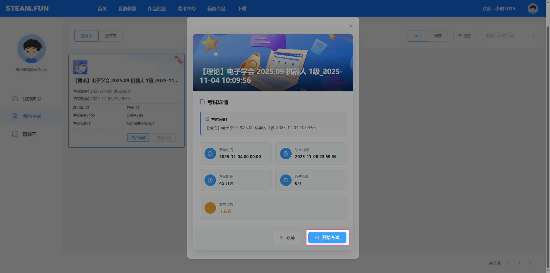考试下发完成后,可以在练习考试-学员考试中找到刚刚下发的考试