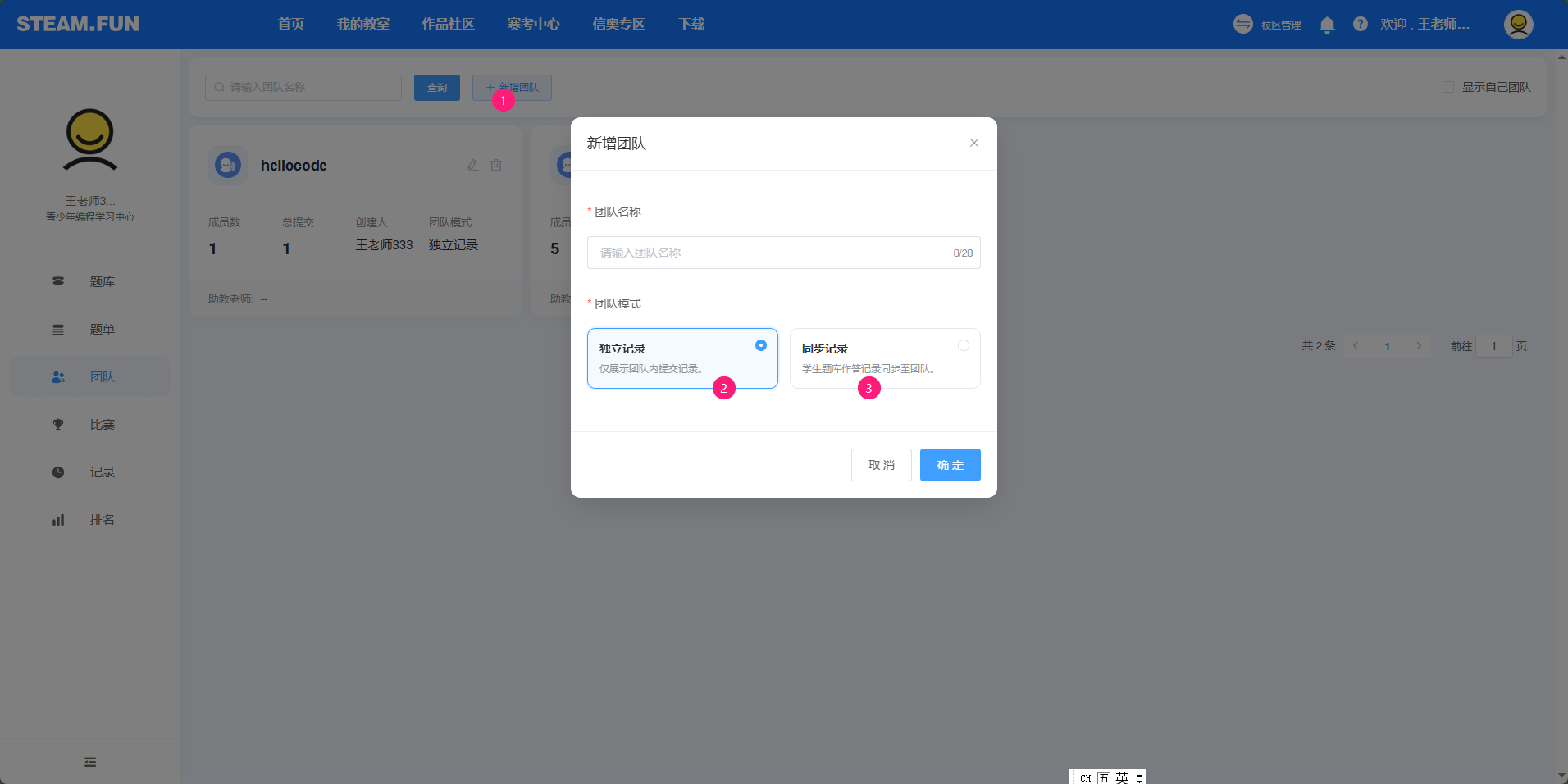 在创建团队时,有两种模式。分别是独立记录和同步记录。