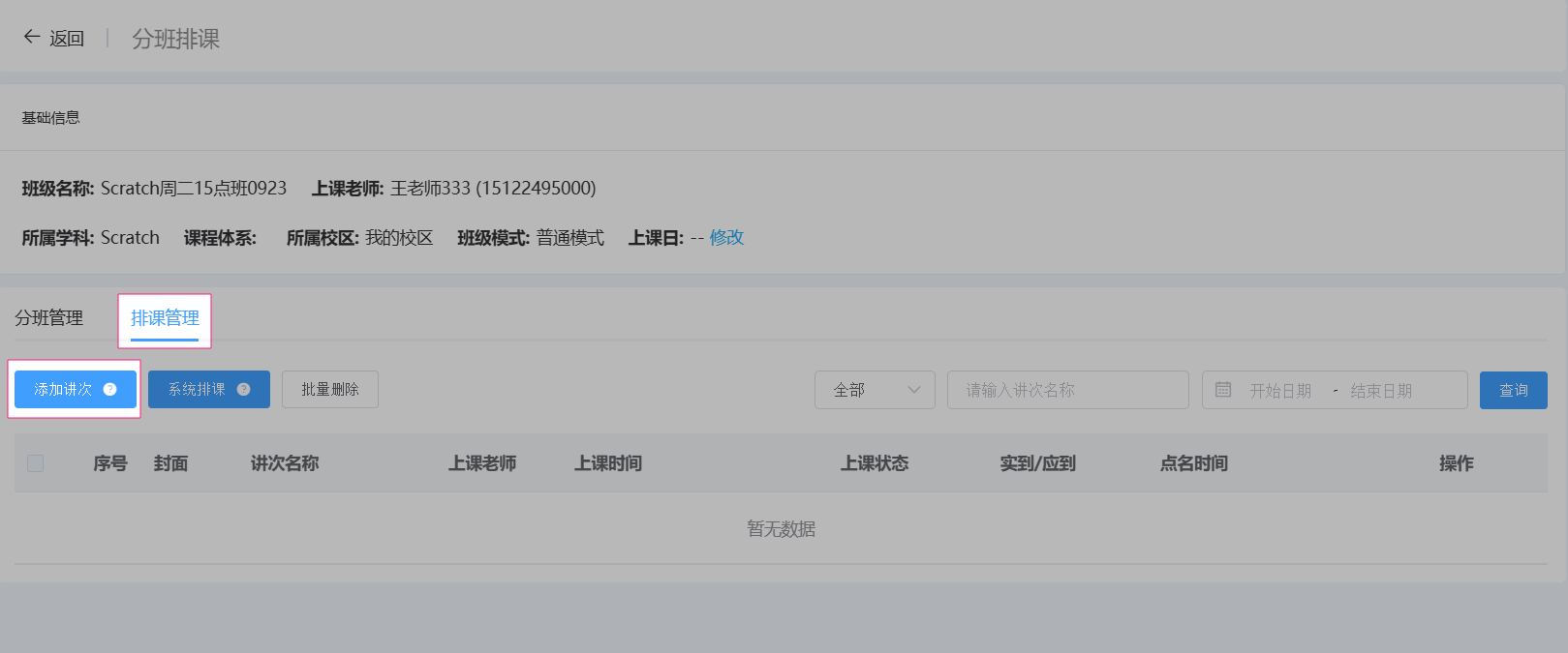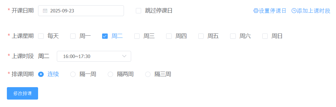 上课时段:这节课的固定上课时间,校区内置一次就可以选择。