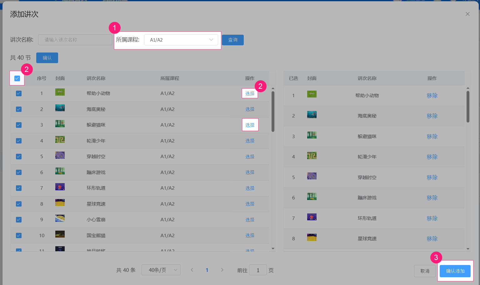 步骤3:筛选出想上的课程,可以单个选择,也可以批量选择。
