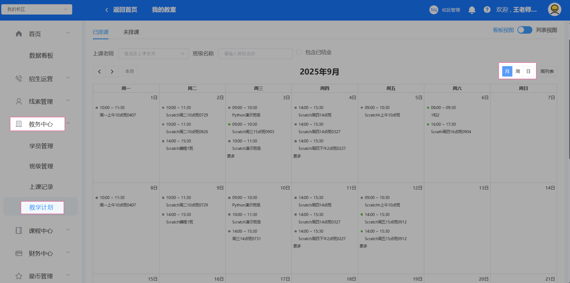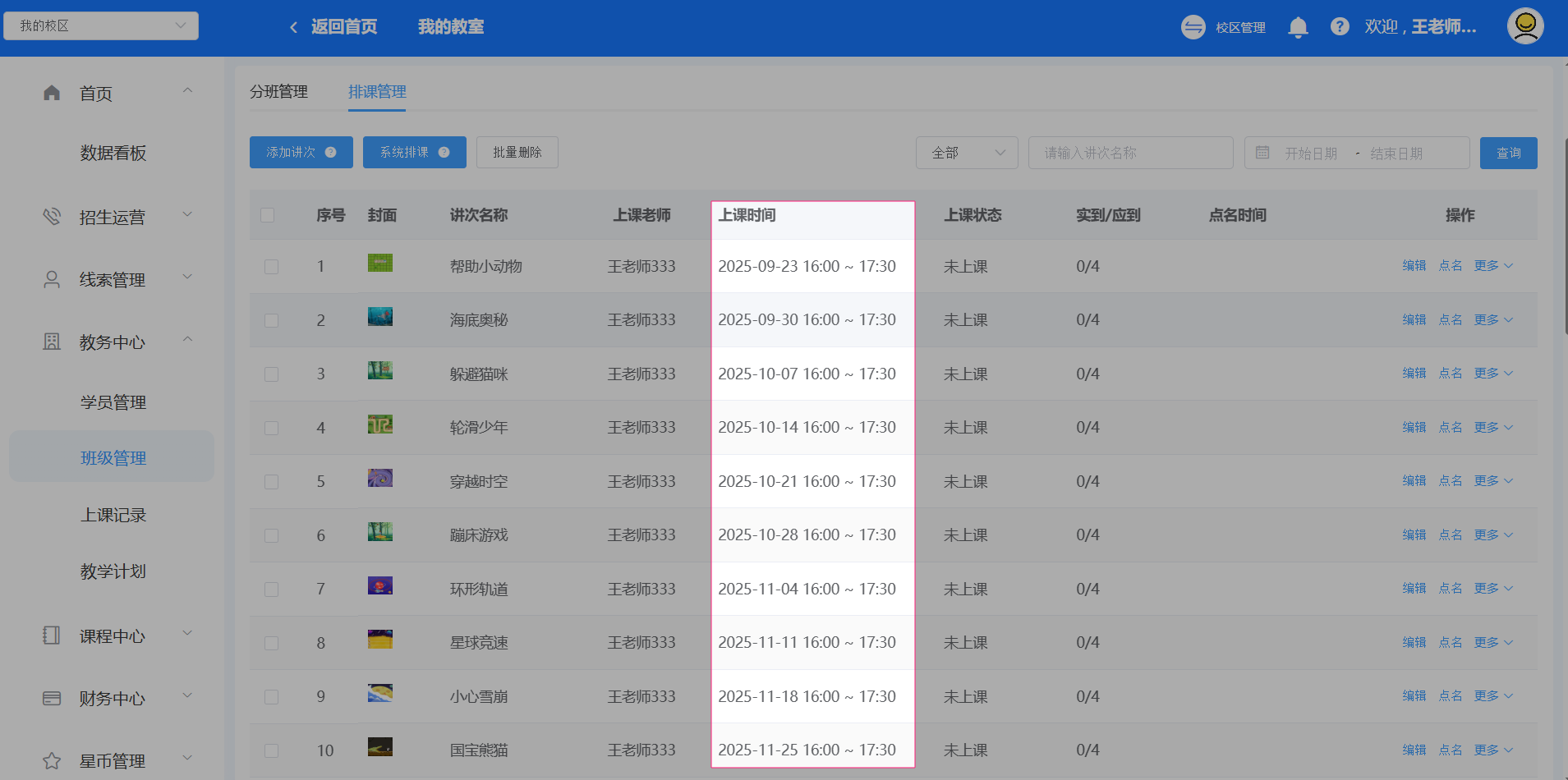 步骤5:完成排课后,每节课都会拥有一个初始的上课时间。