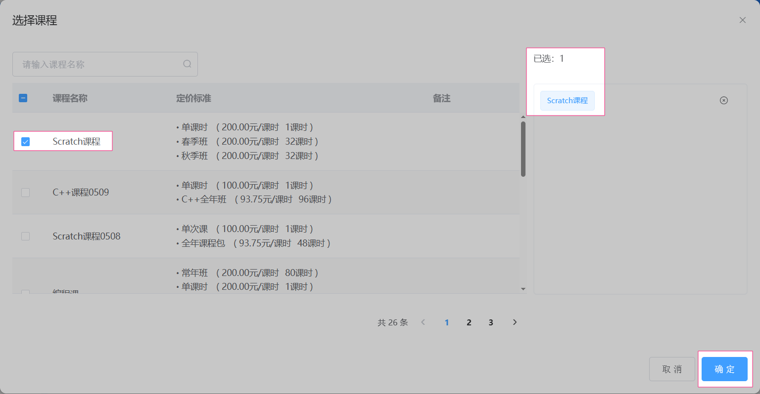 配置课程商品是前期准备工作,有了课程商品,才可以录入学生的报课订单。