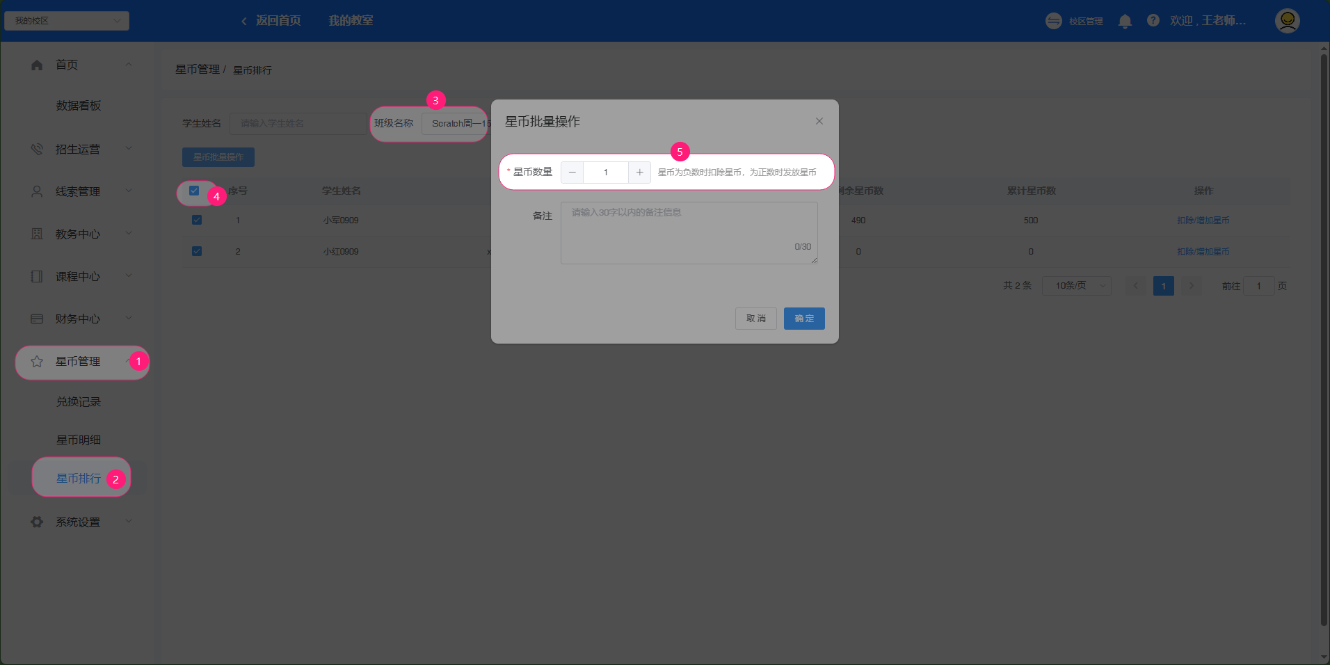 批量给某个班级的学生发星币