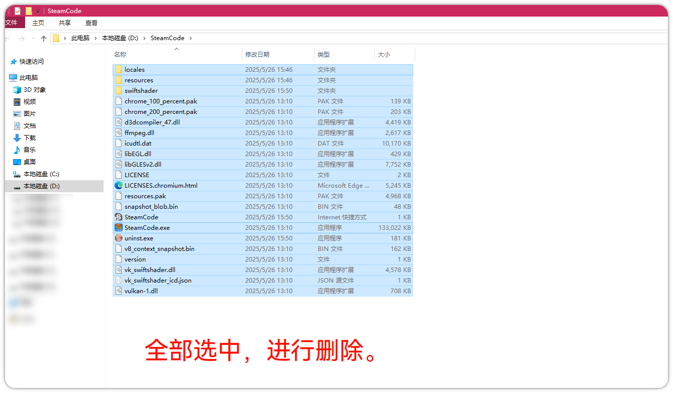 如果文件夹删除不掉,可以重新启动下电脑,再进行删除。或杀掉steamcode进程后进行删除。