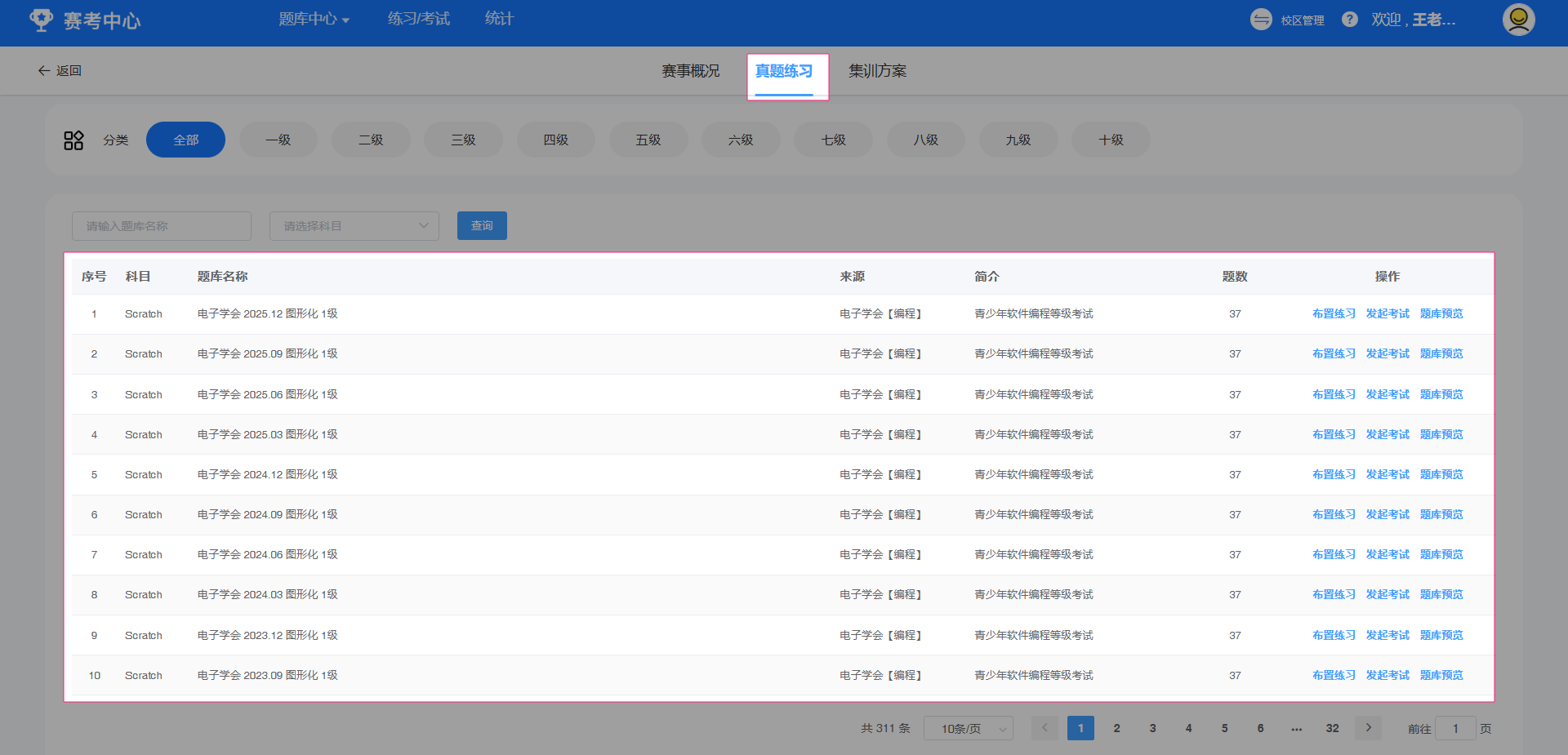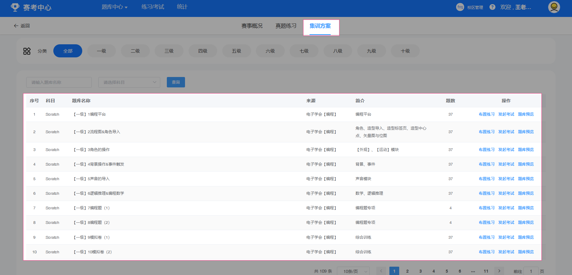 点选进入目标考级版块,可以看到当前考级集训方案相关试题