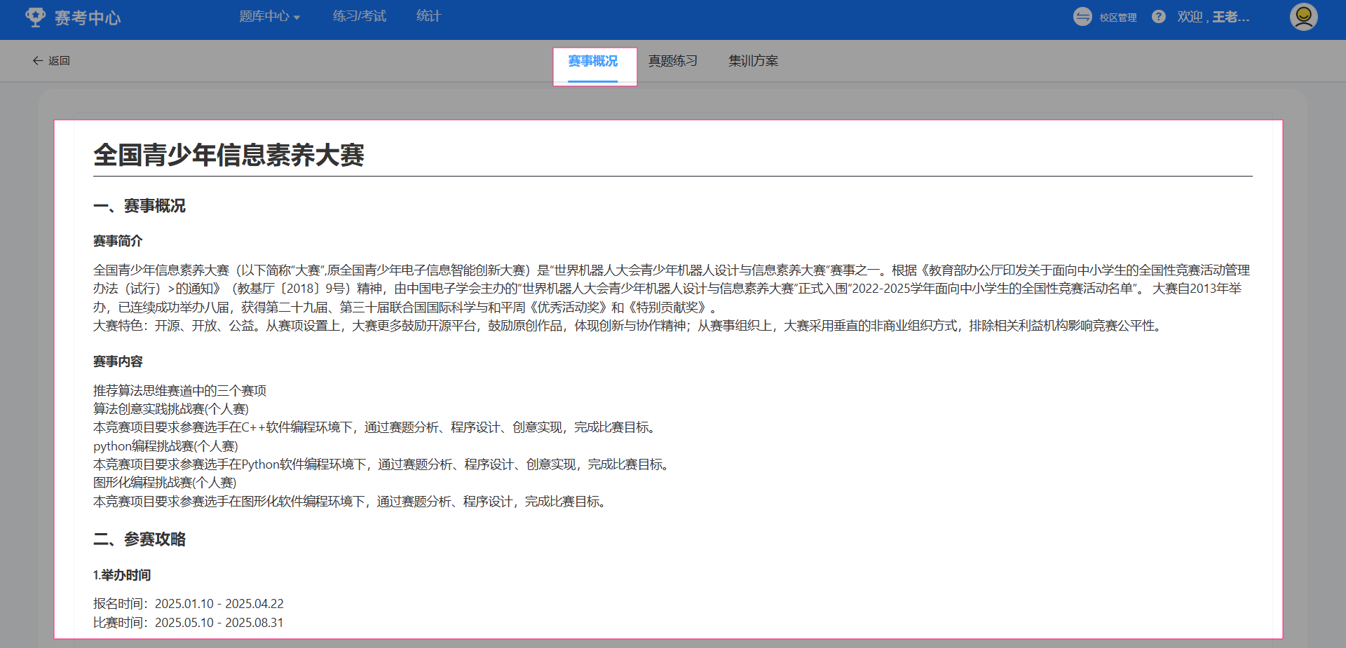 点选进入目标大赛版块,可以看到当前赛事介绍
