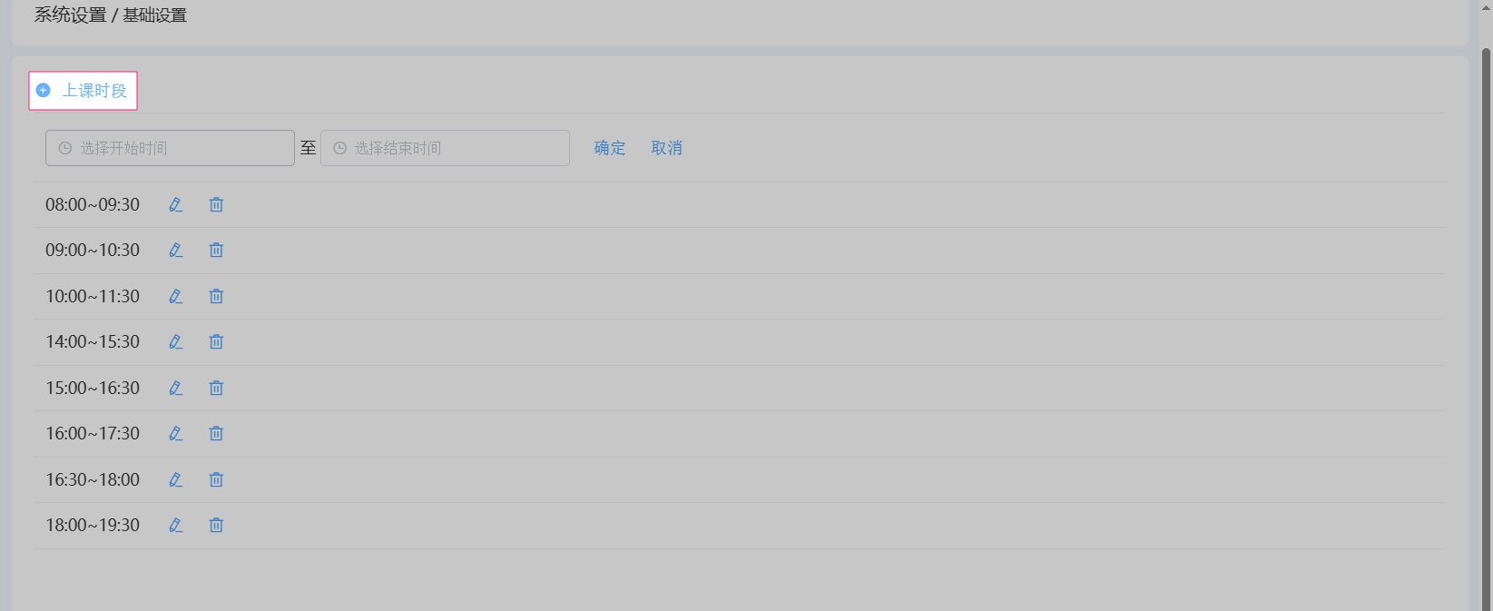 教务设置-授课时段