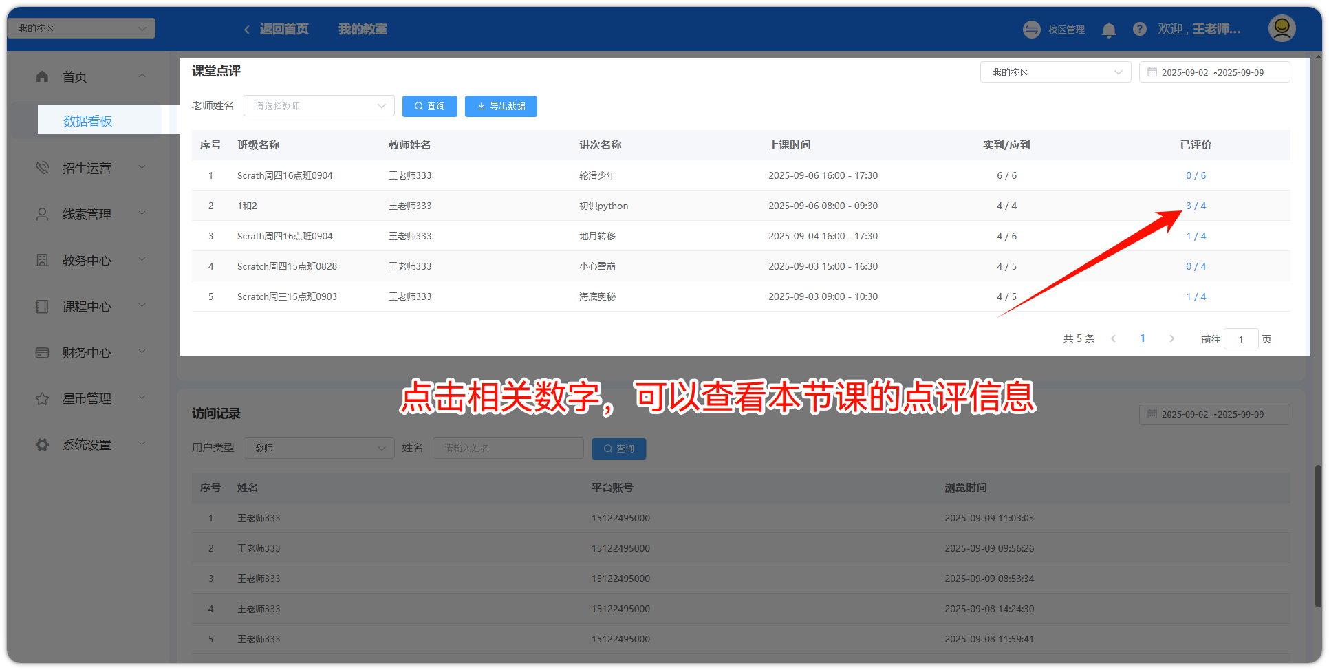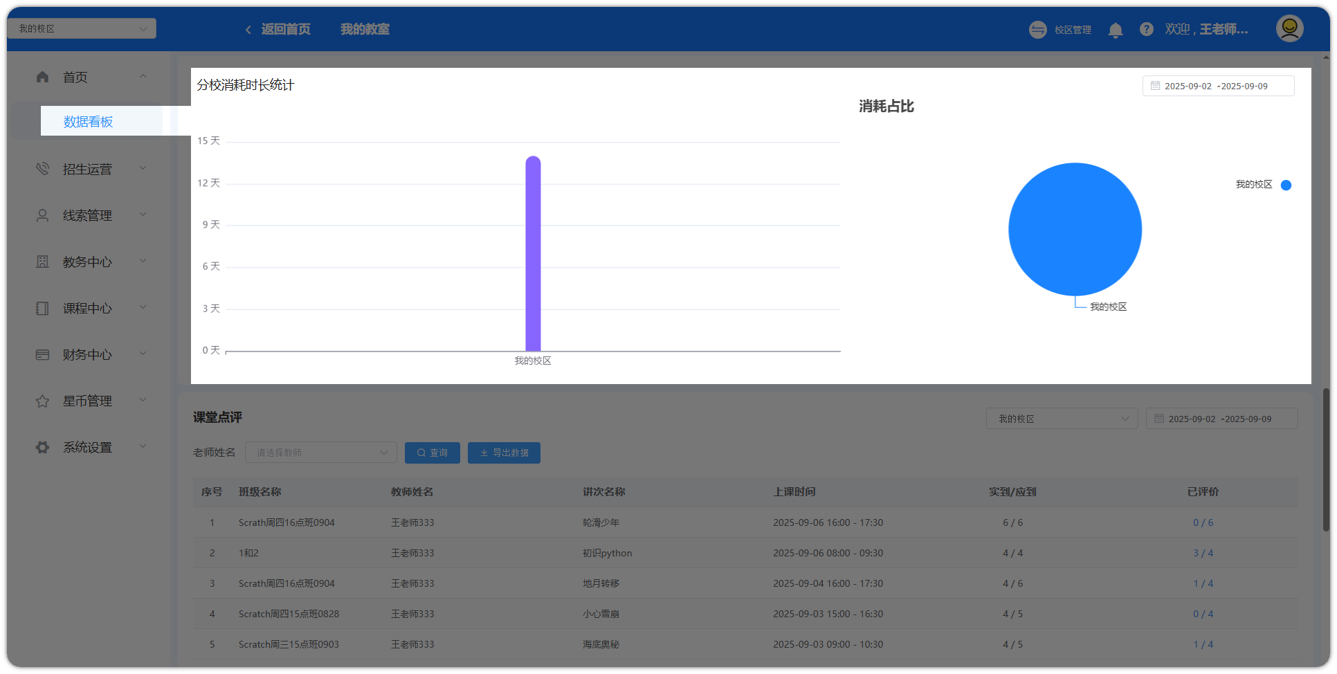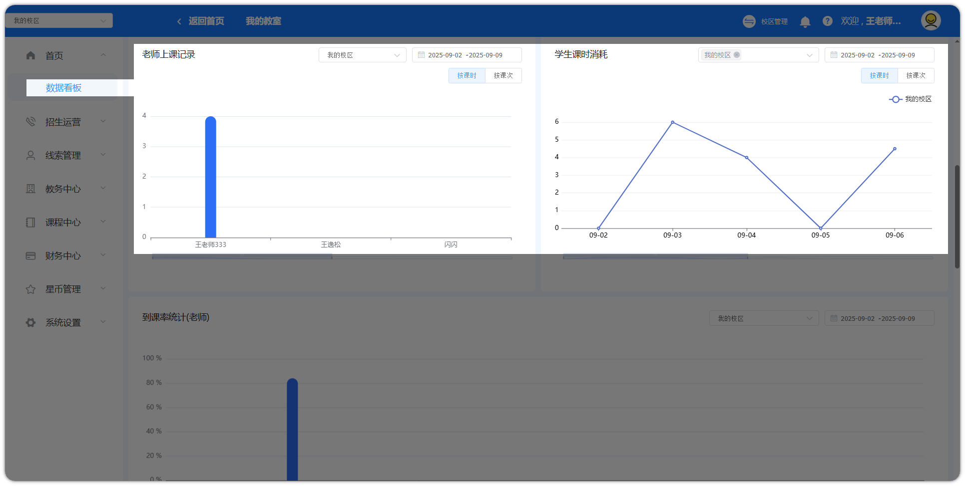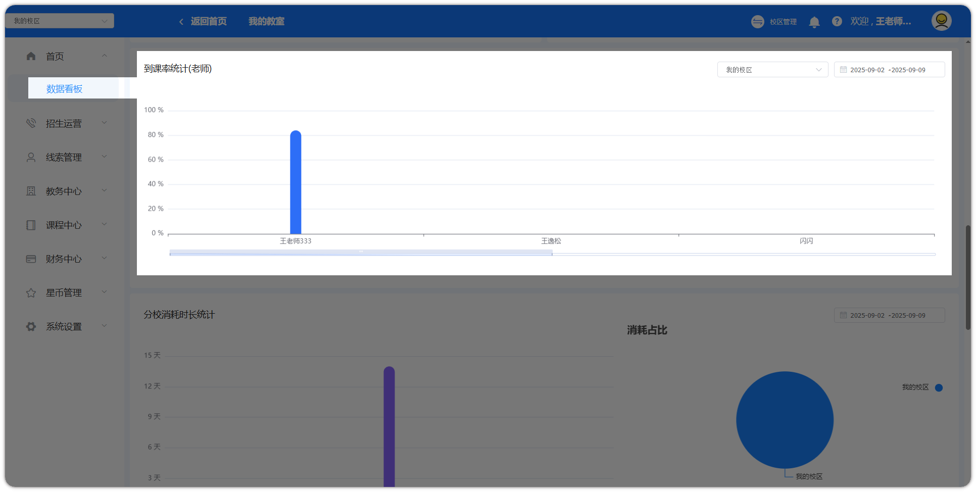 登录账号后,点击【校区管理】,即可进入数据看板页面。