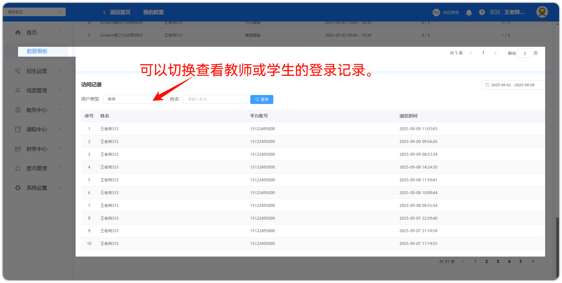 教师账号或学生账号登录平台的访问记录
