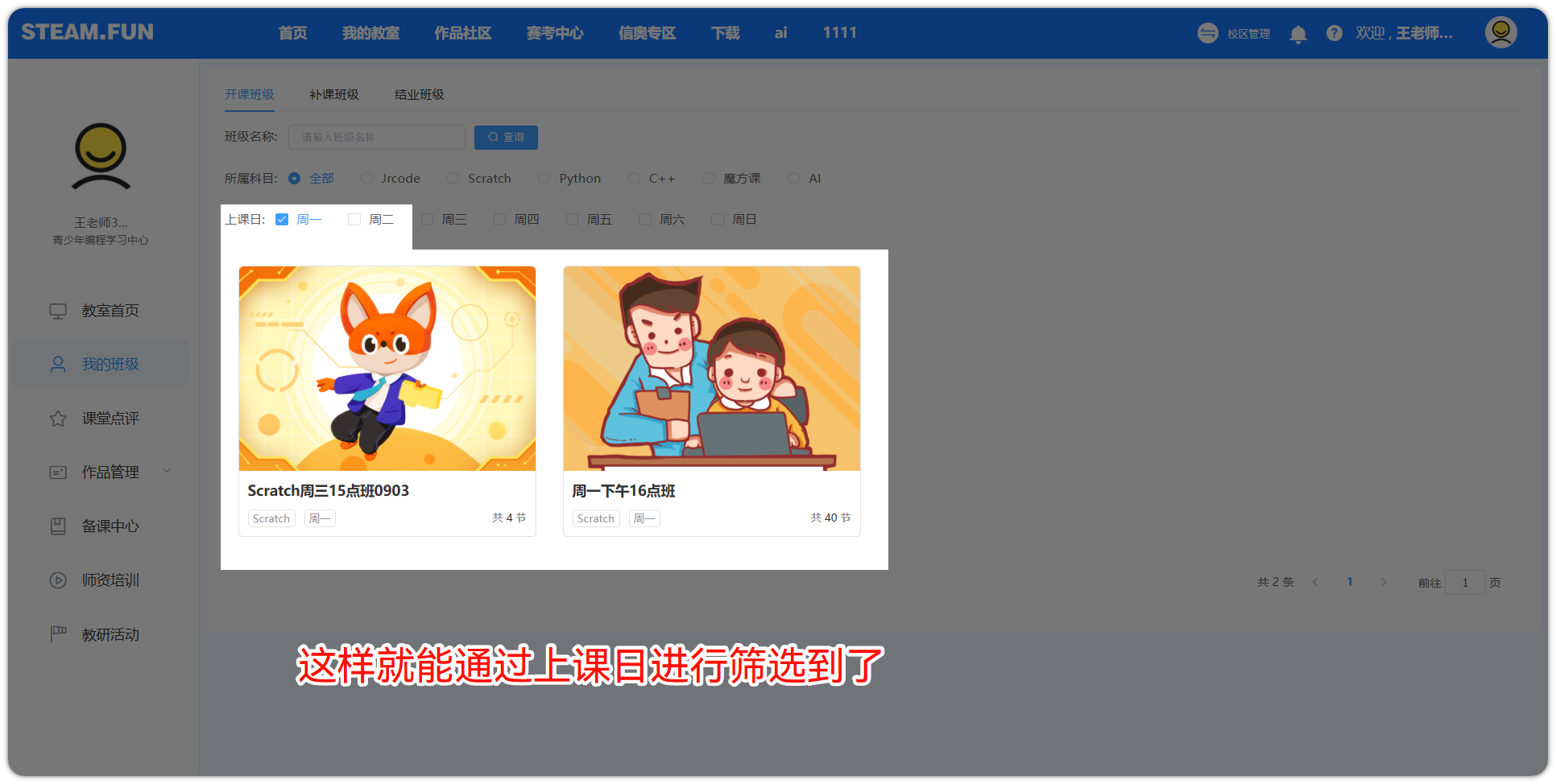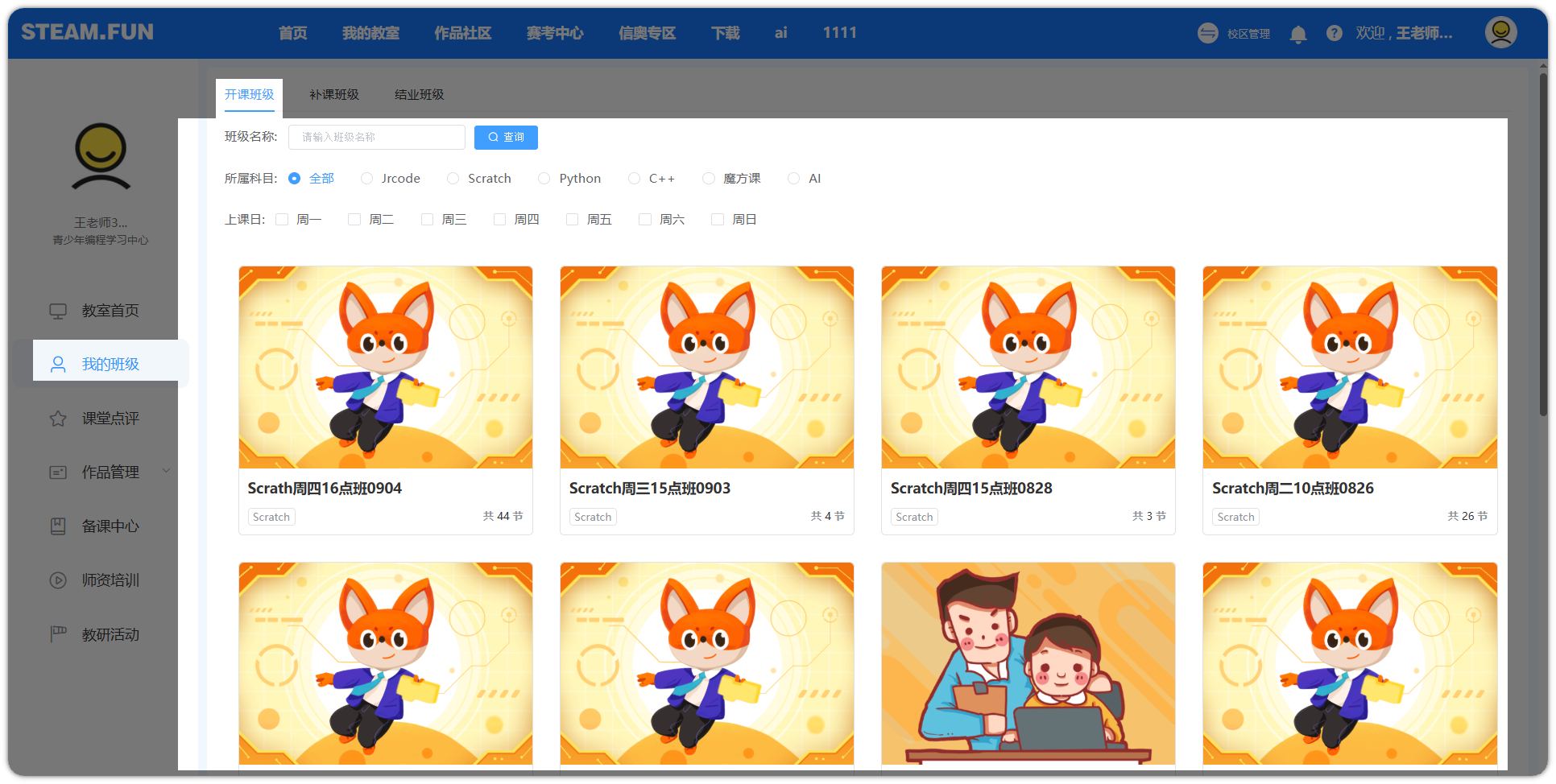 包含现在所开设的正在上课中的班级。