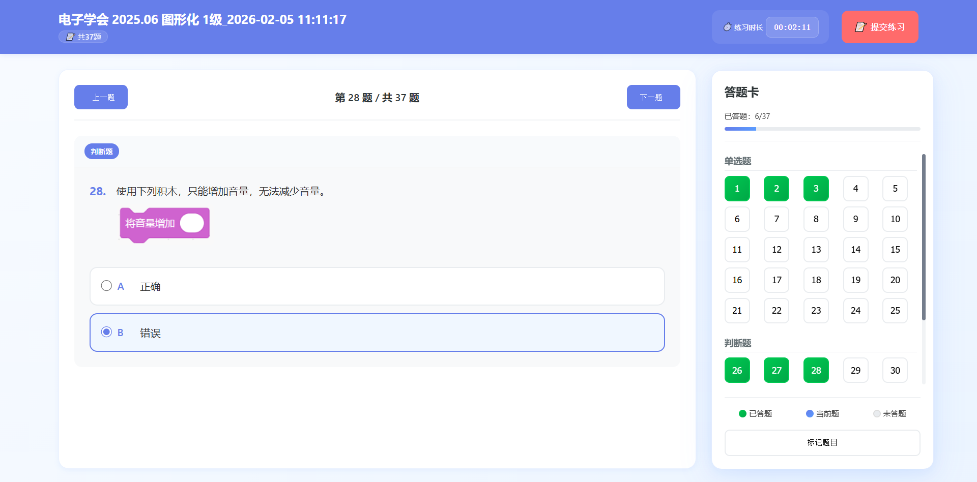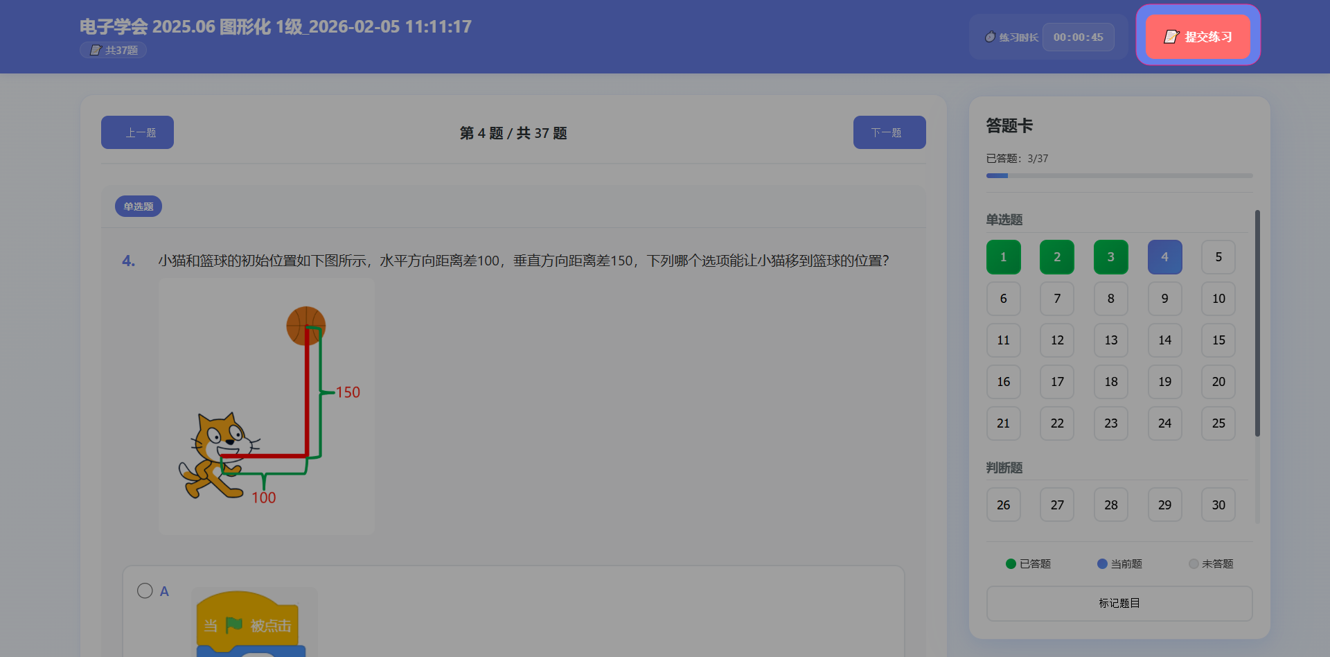 做完本次练习后,点击提交练习的按钮,可以完成1次练习。