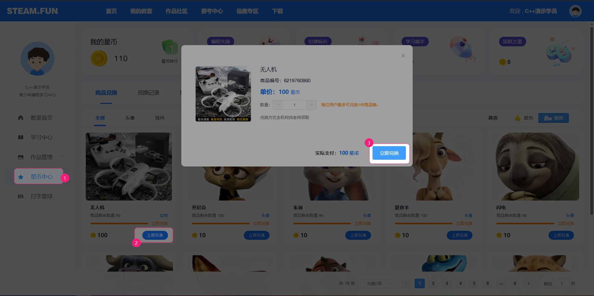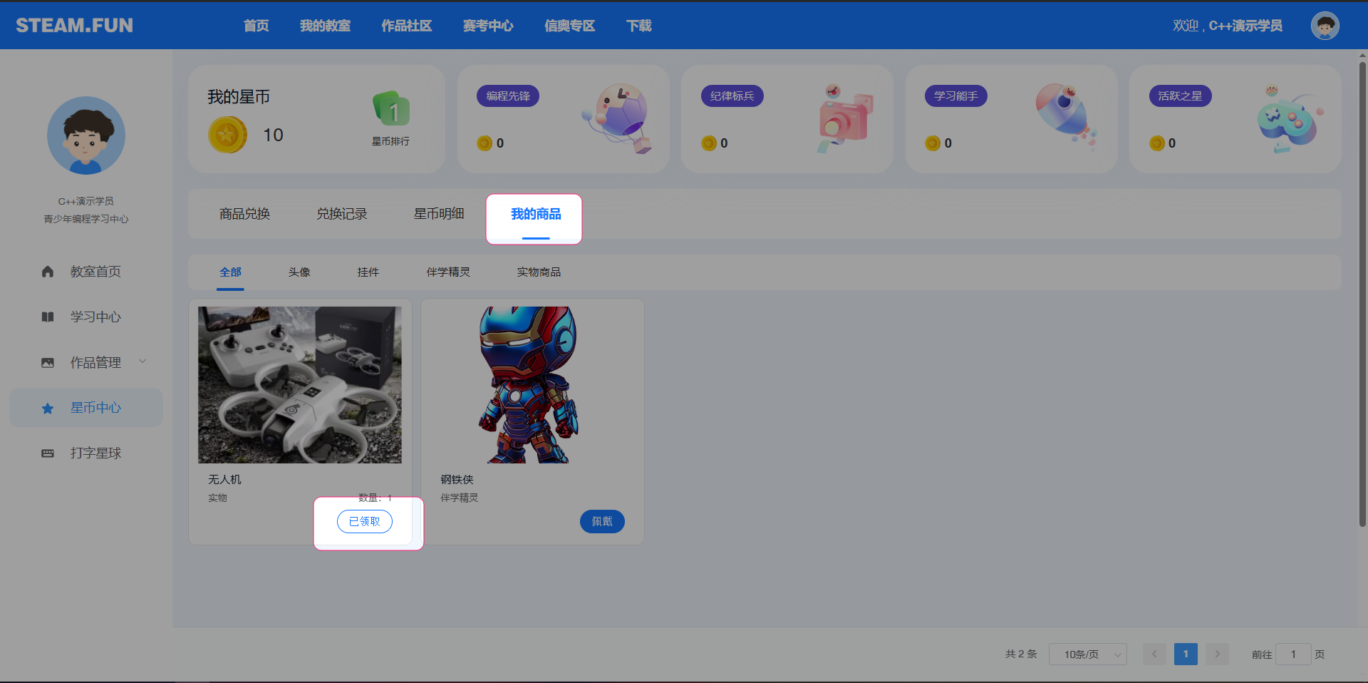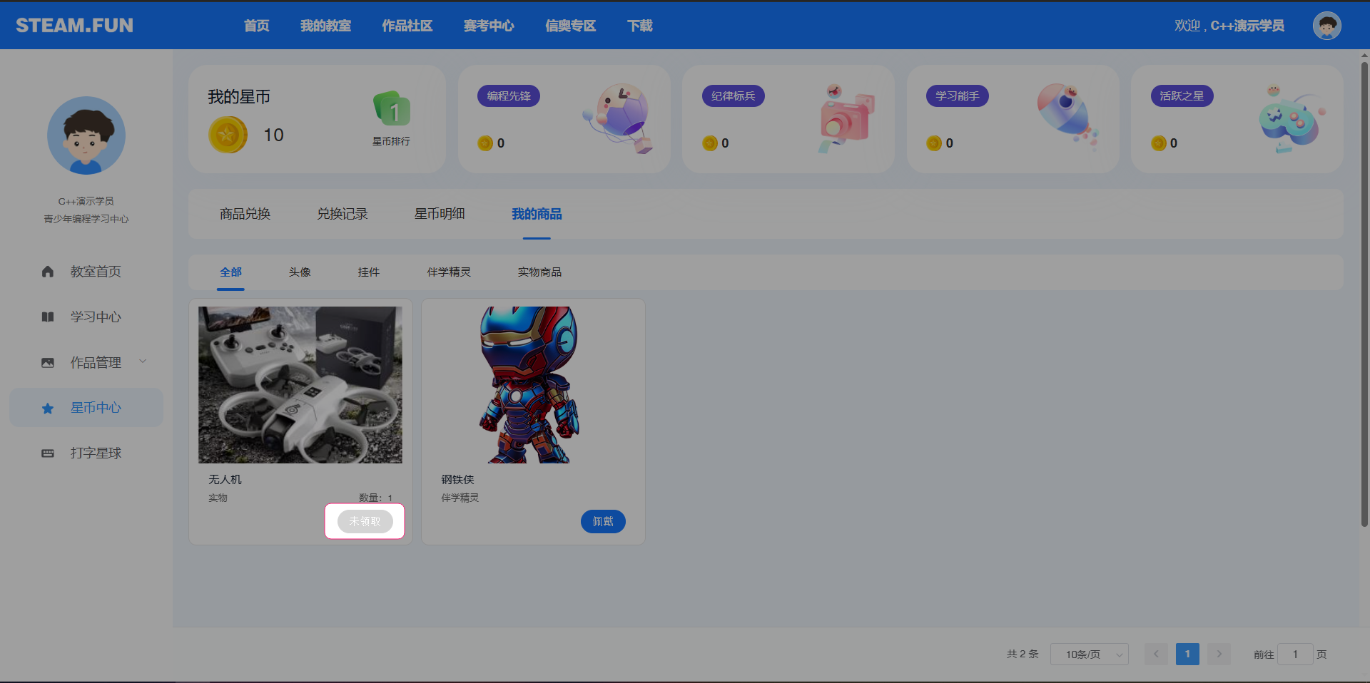 学生进入我的教室、星币中心、找到自己想要的礼品,点立即兑换。等待老师审核。 目前处于待审核状态,在星币中心,我的商品,下可以看到未领取的商品。