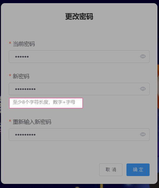 为了大家的账号安全,推荐重新设置一下密码。密码至少8个字符长度,可以是数字与字母的组合。