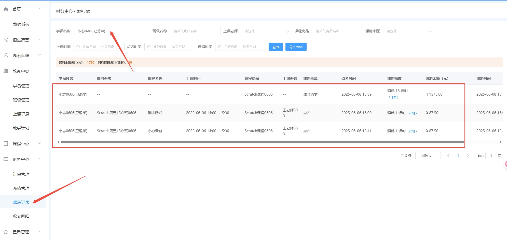 怎样看历史学员/退学学员的上课记录?